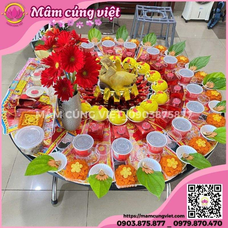 - Tiết Kiệm Thời Gian Tối Đa: Bạn chỉ cần tập trung vào việc đón khách, mọi công đoạn chuẩn bị, nấu nướng, sắp xếp lễ vật (kể cả những chiếc Bánh Phát Tài rực rỡ) sẽ do Mâm Cúng Việt thực hiện trọn gói.