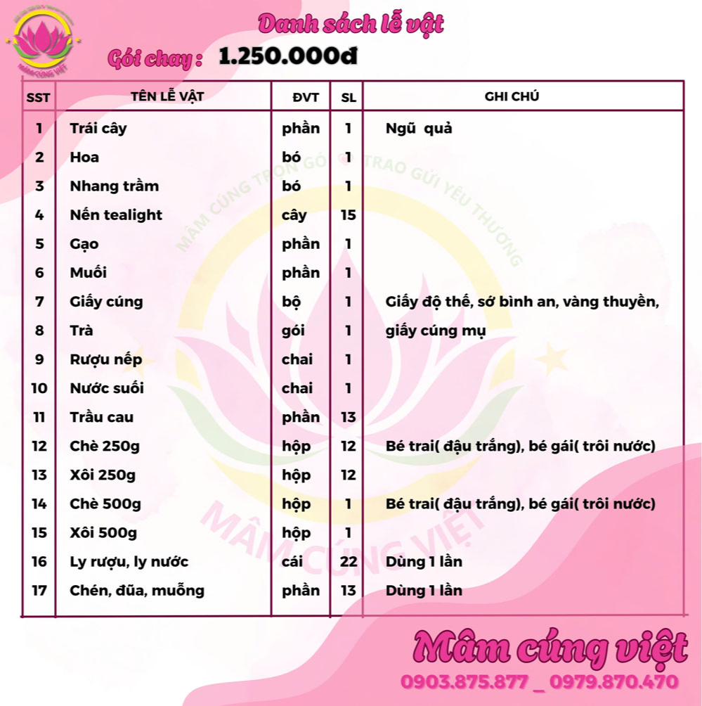 Phần kế tiếp kính mời quý khách tham khảo một số mâm cúng cùng giá cả của dịch vụ đặt mâm cúng việt - MamCungViet.Com