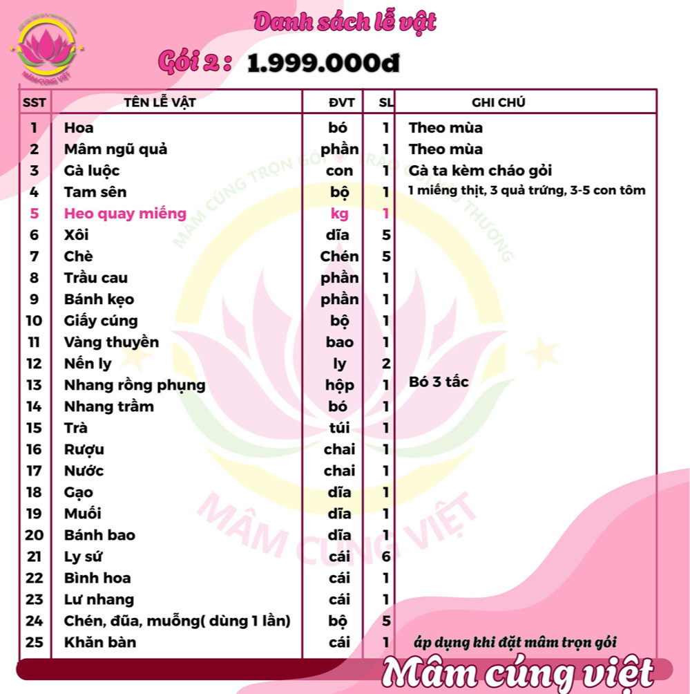Phần kế tiếp kính mời quý khách tham khảo một số mâm cúng cùng giá cả của dịch vụ đặt mâm cúng việt - MamCungViet.com