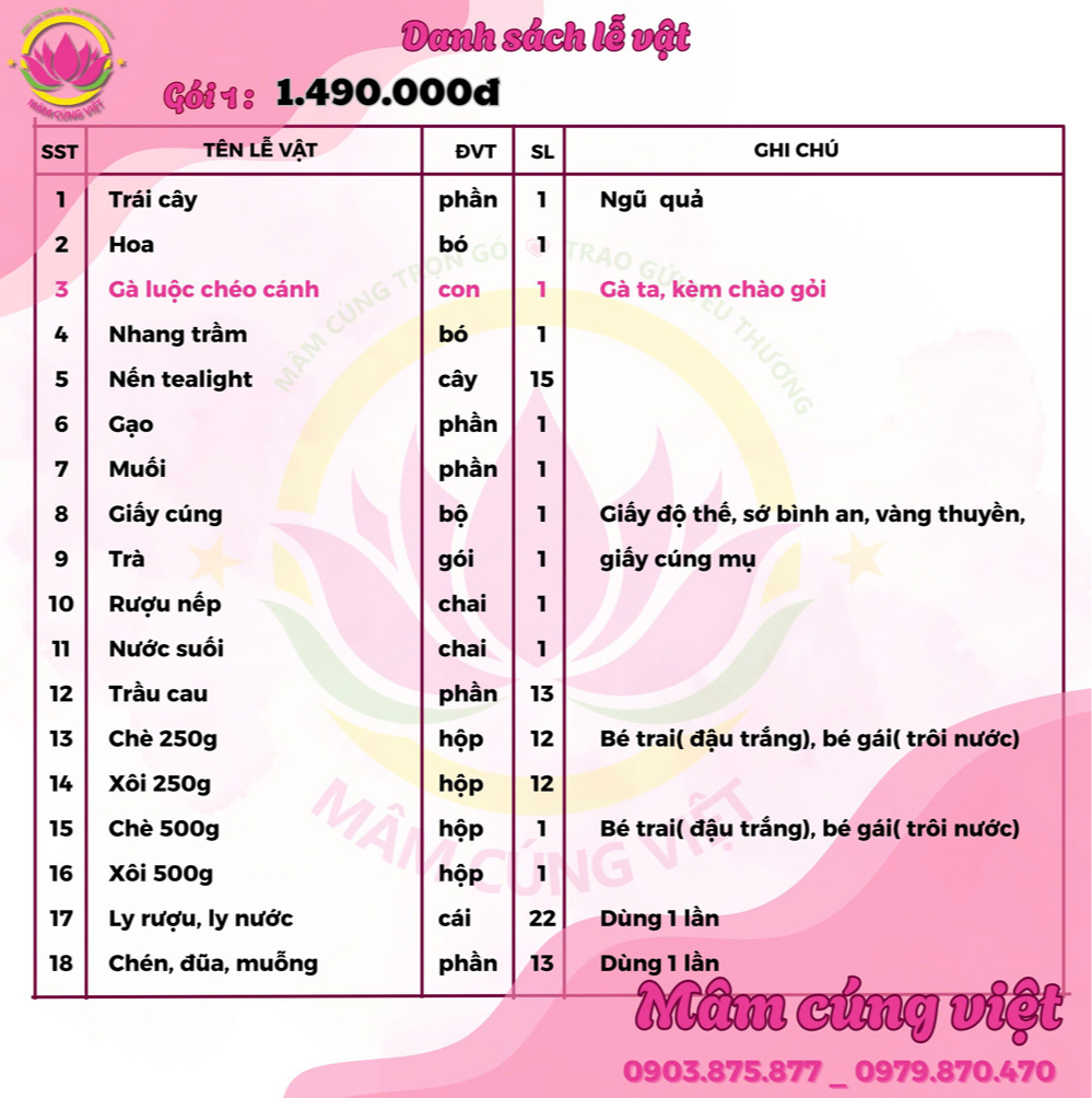 Phần kế tiếp kính mời quý khách tham khảo một số mâm cúng cùng giá cả của dịch vụ đặt mâm cúng việt - MamCungViet.Com