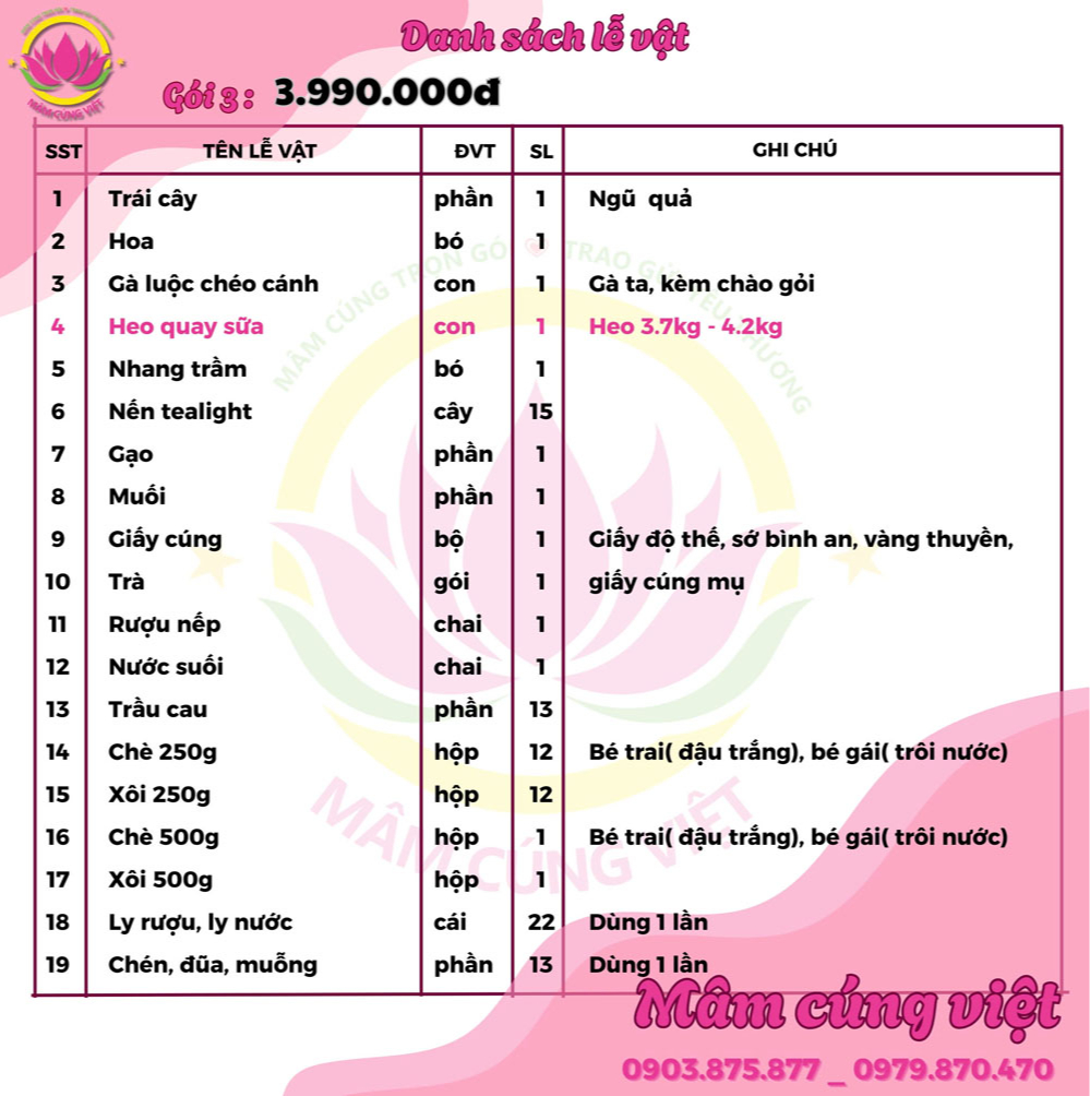 Phần kế tiếp kính mời quý khách tham khảo một số mâm cúng cùng giá cả của dịch vụ đặt mâm cúng việt - MamCungViet.Com